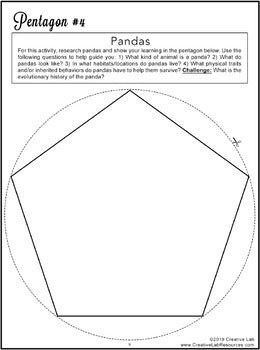 For each pentagon, students are asked to answer the guiding questions and complete the challenges through conducting research. To communicate their learning, students write and draw pictures within each pentagon. After completing the 12 pentagons, students follow step-by-step instructions to construct their dodecahedrons.