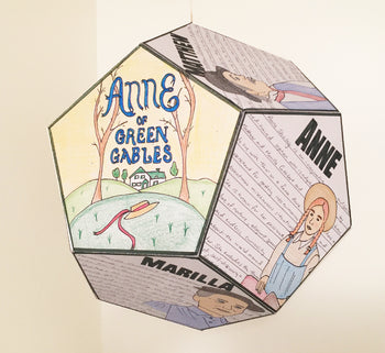 For this project, students will complete 12 activities related to Because of Anne of Green Gables and construct a dodecahedron, a 12-sided polyhedron, to showcase their learning. These can be hung from the ceiling and are beautiful on display.