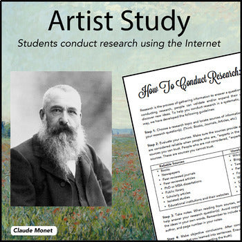 This resource guides students through conducting their own research report on a famous artist (90+ topics are listed). After choosing a topic to focus on, students are asked to conduct research using the Internet and books while following criteria. Next, students are asked to share their learning by creating a poster board, presentation board, power point presentation, or dodecahedron (Instructions and Pentagon Template included) . Artwork may also be created to further display learning. Finally, students present their work to the class.