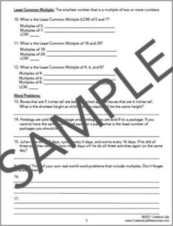 Students will improve their conceptual understanding of multiples. Lesson explanation, visual examples/charts, practice questions, real-world word problems, "your turn" practice questions/ word problems, and answer keys, are all included!