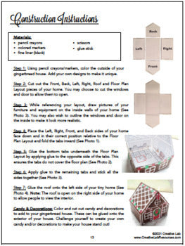 This fantastic no-prep resource guides students through researching, designing and constructing a gingerbread house. Students are guided through the process of floor plan design, configuring the location/size of each piece of equipment and furniture, determining the area of each piece of equipment, and calculating the construction costs while staying on budget. Students then design and colour both the interior and exterior of their homes before they begin construction (instructions with photos included).