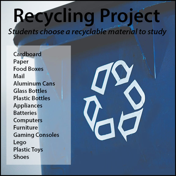For most of human history, the practice of recycling has been commonplace. For example, in pre-industrial Europe, bronze was collected and melted down for reuse. Today, in many countries around the world, government-mandated recycling programs are well-established, however, despite these efforts persistent obstacles to recycling continue to exist. From the common piece of paper, to the more complex computer, recyclable materials vary greatly from one another. For this assignment, students will choose a recyclable material to study and create a project to showcase their learning. Have fun!