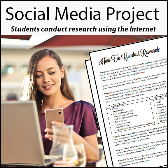 This resource guides students through conducting their own research report on a social network (55+ topics are listed). After choosing a topic to focus on, students are asked to conduct research using the Internet and books while following criteria. Next, students are asked to share their learning by creating a poster board, presentation board, power point presentation, or dodecahedron (Instructions & Pentagon Template included). Artwork may also be created to further display learning. Finally, students present their work to the class.