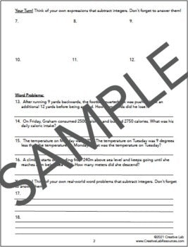 Students will improve their conceptual understanding of how to subtract integers by using counters / integer tiles. Lesson explanation, visual examples/charts, practice questions, real-world word problems, "your turn" practice questions/ word problems, and answer keys, are all included!