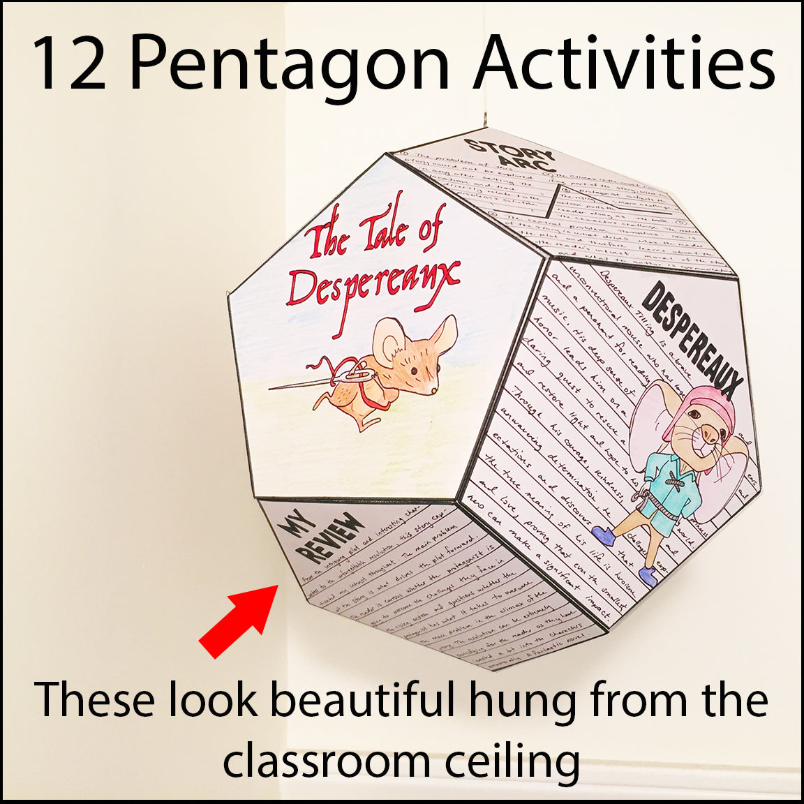 For this project, students will complete 12 activities related to The Tale of Despereaux and construct a 12-sided polyhedron called a dodecahedron to showcase their learning. These can be hung from the ceiling and are beautiful on display.