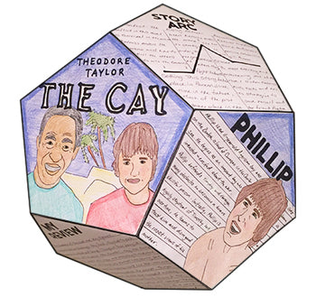 For this project, students complete 12 activities related to The Cay and construct a 12-sided polyhedron called a dodecahedron to showcase their learning. These can be hung from the ceiling and are beautiful on display.