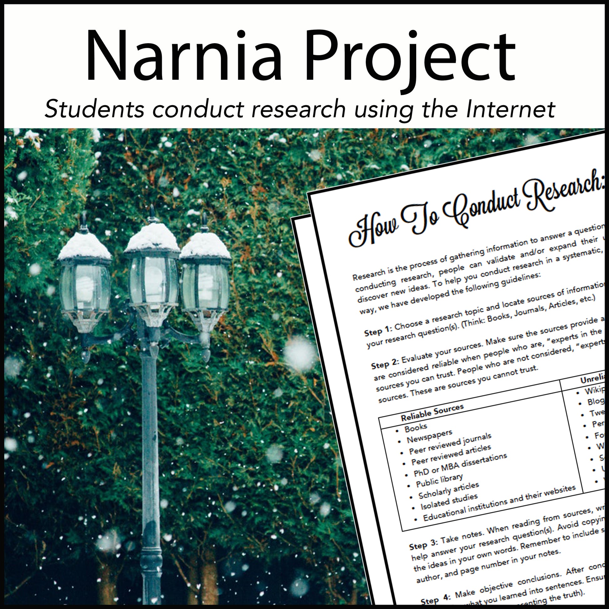 This resource guides students through conducting their own research report on a character from The Chronicles of Narnia (80+ topics are listed). After choosing a topic to focus on, students are asked to conduct research using the Internet and books while following criteria. Next, students are asked to share their learning by creating a poster board, presentation board, power point presentation, or dodecahedron (Instructions and Pentagon Template included). Artwork may also be created to further display learning. Finally, students present their work to the class.